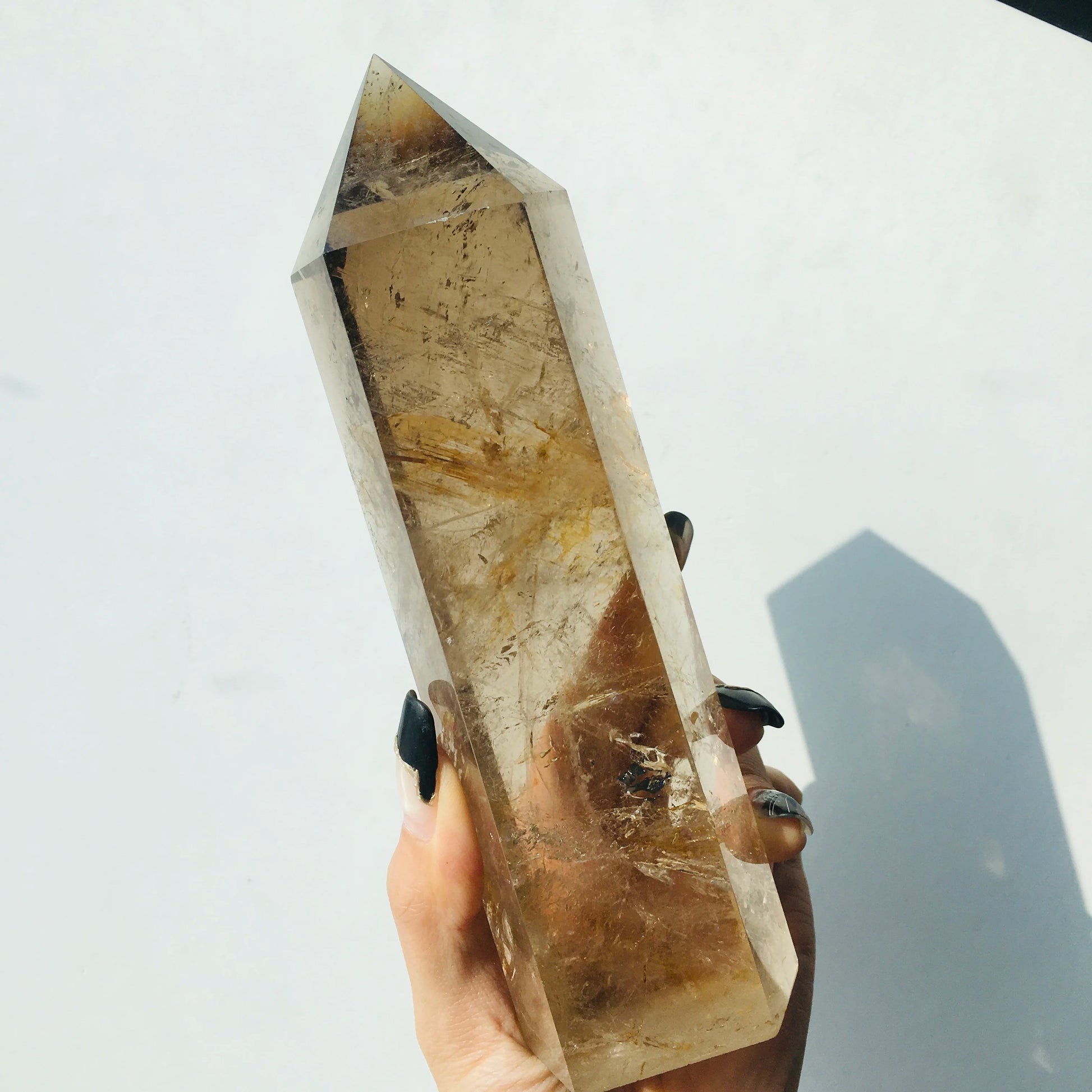 Channel grounding strength and spiritual clarity with this Large Natural Smoky Quartz Tower, a powerful hexagonal prism carved from authentic crystal. Known as the Stone of Transformation and Protection, Smoky Quartz gently dissolves negativity, stabilizes emotions, and anchors the spirit to the present moment.
