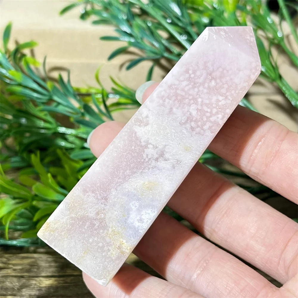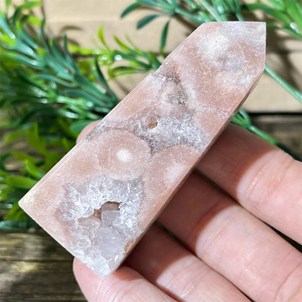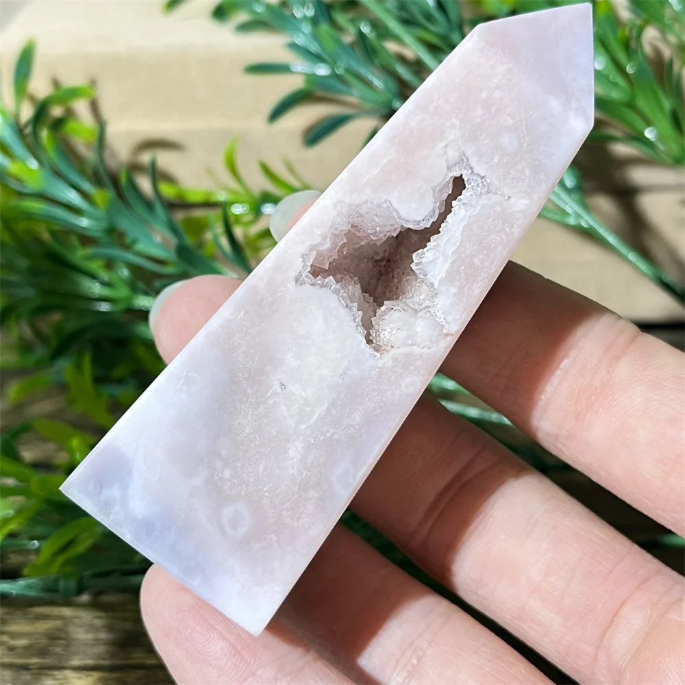 Crafted from genuine crystal, this tower merges the soothing energy of Pink Amethyst with the nurturing, grounding essence of Flower Agate. The presence of druzy quartz pockets amplifies spiritual vibrations, making it a powerful tool for energy healing and manifestation work.
