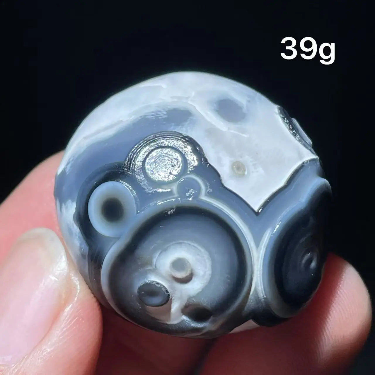 Color: Earthy black tones with natural “eye” patterns